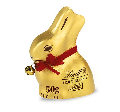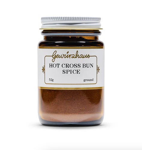 1. Lindt - Gold Bunny 2. Tony’s Chocolonely - Easter Egg Carton 3. Gewurzhaus - Hot Cross Bun Spice 4. T2 - Baxter's Hot Cross Buns Tea Bag 5. Maison Balzac The Asparagus Bunch Candles 6. Nonna’s Grocer - Egg Candles