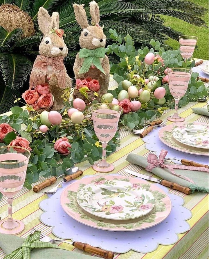 Incorporate subtle Easter themed elements like decorative plates, mini bunny figurines, or baskets filled with faux grass and eggs. These touches will give the brunch a festive feel without being over the top. You can even scatter a few small chocolate eggs or candies on the table for a playful element.