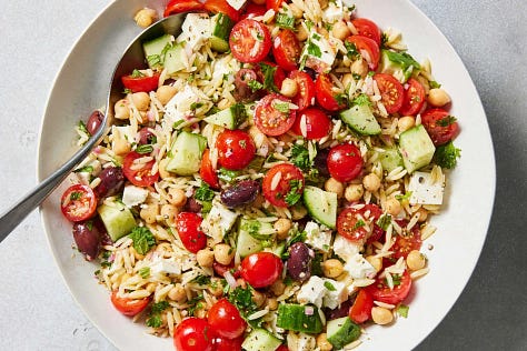 A light, refreshing orzo salad brings a burst of colour to your table!