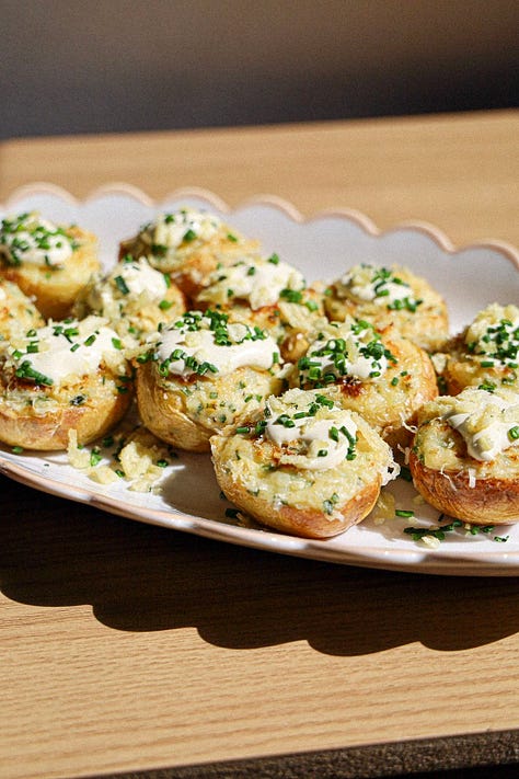 These crispy, golden potatoes, roasted to perfection and are a crowd-pleasing side that pairs wonderfully with the whole roasted chicken. They’re easy to make and serve in small, individual portions, giving your guests the perfect bite every time.