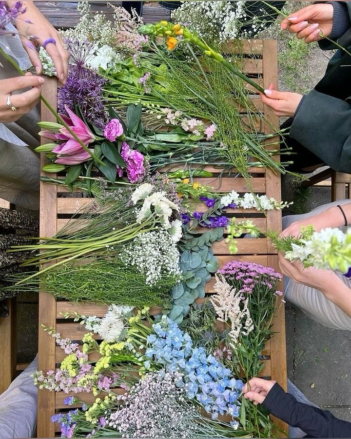 All you need: some coloured tissue paper, ribbons, wrapping paper, and a few good friends. Ask each person to bring 1–2 bunches of flowers from the supermarket or market, doesn’t need to be expensive. The magic happens when everyone arrives, you lay all the flowers out and mix and match to create your own custom bouquets. Some will be made with your favourite stems, some with your friends' go-tos, and others with whatever looked too beautiful at the market to pass up. The result is something fun to do, something beautiful to take home, and a mix of everyone’s taste coming together. Plus, put out some light snacks, the kind of night that feels like a DIY project and a catch-up all in one!