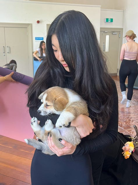 Puppy yoga with corgis. Easily the highlight of the month. Imagine trying to hold a downward dog while a tiny corgi waddles up to you, or attempting a stretch with a puppy flopping onto your mat for a nap. It was the best kind of chaos.