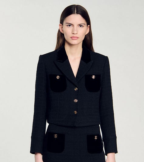 Sandro Velvet Tweed Cropped Jacket - velvet and tweed? The dream combination. I feel it’ll look really nice with high waisted jeans!